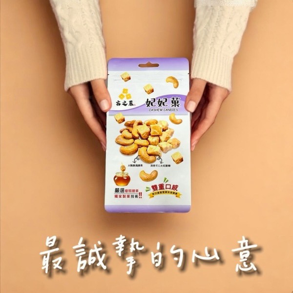 採用頂級 W180 大顆腰果、日本楓糖、法國奶油、天然海藻糖及麥芽糖製成。